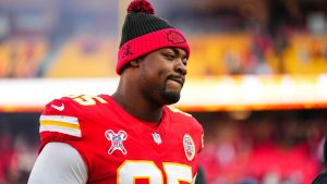 Chiefs star Chris Jones cries during the national anthem ahead of playoff game against Texans
