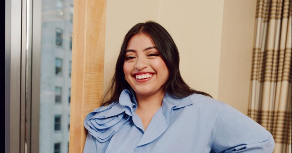 Monterroso Mejia possesses a profound humility about all her work, chalking up her acting bona fides to simple good luck. (Never mind her natural ability to buoy an otherwise flat scene with her cartoonishly wide-eyed grin.) To her, there has to be “something bigger” at play that’s granted her access to work with stars like Larry David, Quinta Brunson, Seth Rogen and more — something written in the stars.