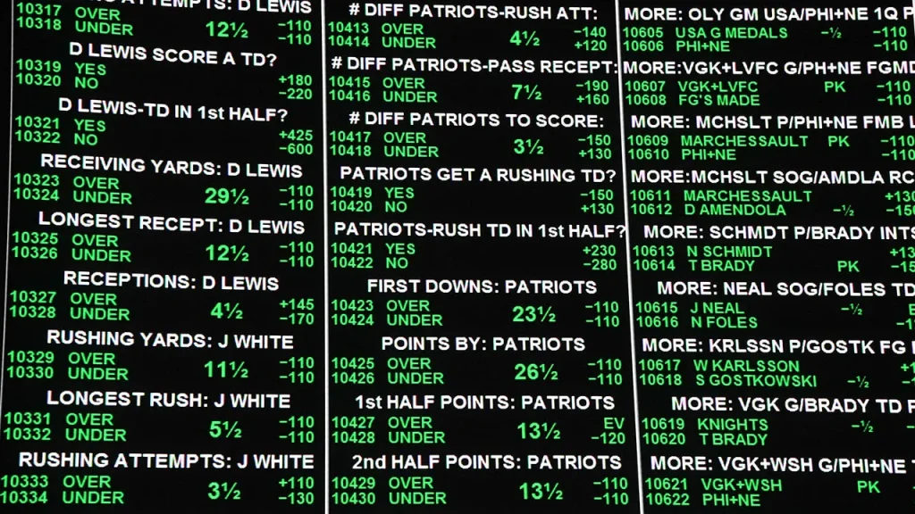 Some of the more than 400 proposition bets for Super Bowl LI between the Philadelphia Eagles and the New England Patriots are displayed at the Race & Sports SuperBook at the Westgate Las Vegas Resort & Casino on Jan. 26, 2018 in Las Vegas. (Ethan Miller/Getty Images)