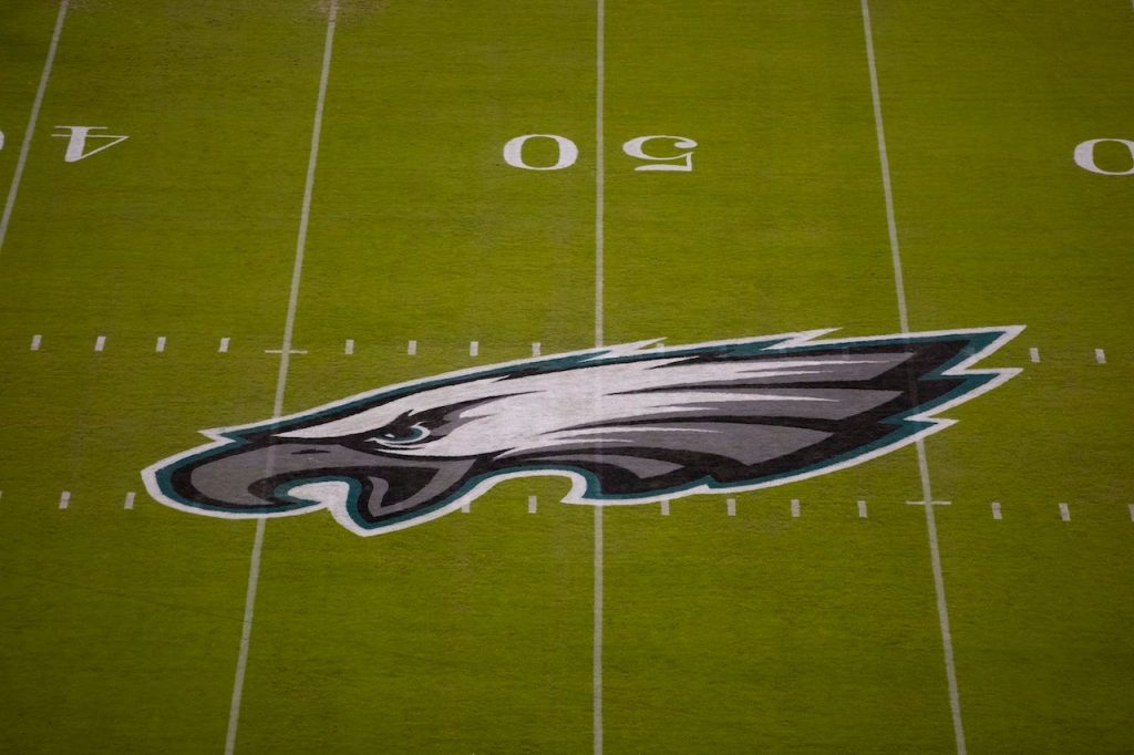 A detailed view of the Philadelphia Eagles logo at midfield prior to the game against the Dallas Cowboys at Lincoln Financial Field on November 1, 2020 in Philadelphia, Pennsylvania. (Mitchell Leff/Getty Images)