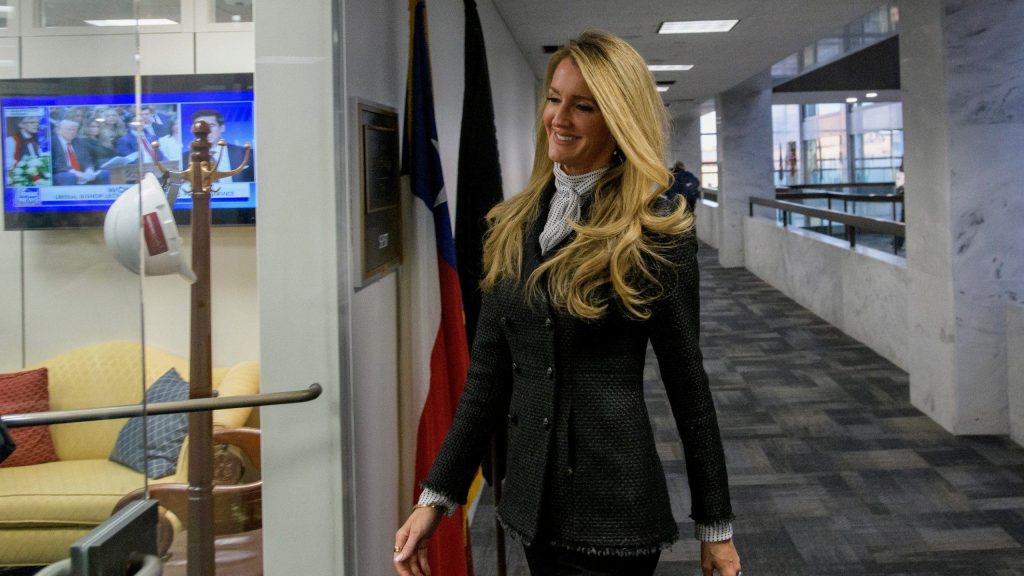 Small Business Administration nominee Kelly Loeffler arrives for a meeting with Sen. John Cornyn, R-Texas, at his office on Capitol Hill, Wednesday, Jan. 22, 2025. (AP Photo/Rod Lamkey, Jr.)