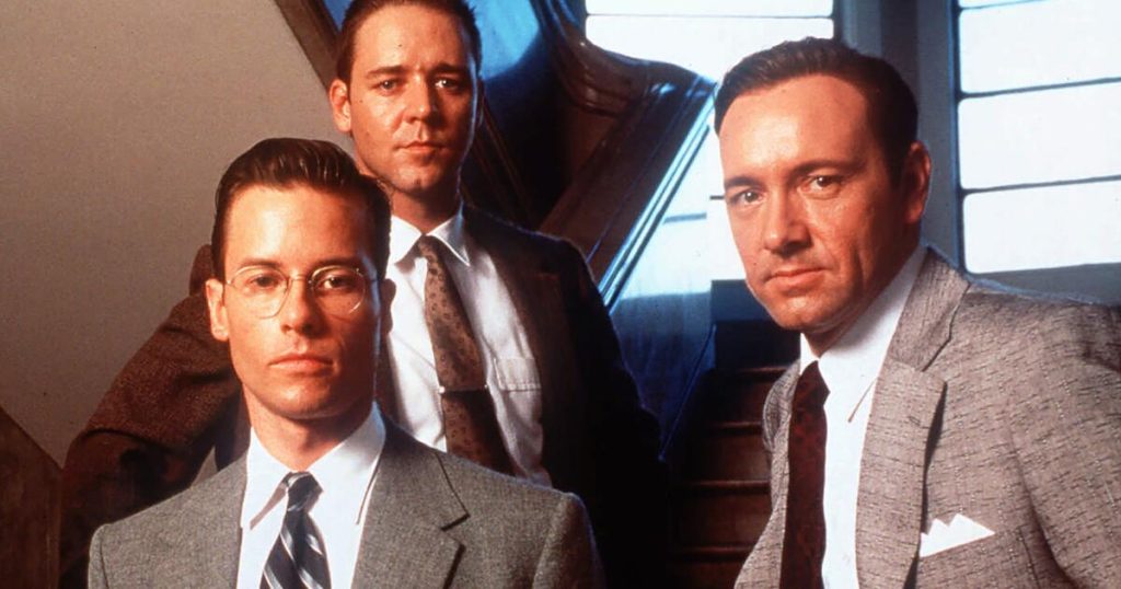 Pearce, now 57, was just 28 in 1996 when he was filming the Oscar-winning “L.A. Confidential,” which also starred Russell Crowe and James Cromwell. The movie lost the 1998 best picture prize to “Titanic” but picked up honors for supporting actress (Kim Basinger) and adapted screenplay.