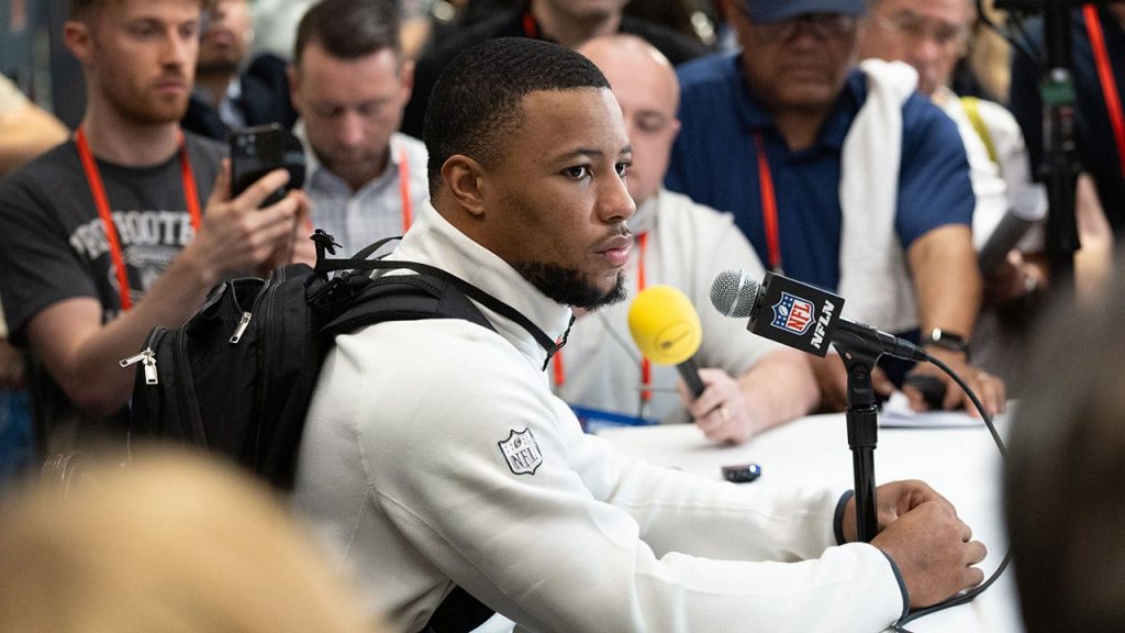 “The highlight-reel runs he’s had, speed, power, agility, catching the football and jumping over people backwards. He’s operating at a high level right now,” he explained, while also touching on his work with the American Gaming Association this week. “He’s in the zone and that’s why the Eagles are at where they’re at right now because of Saquon Barkley.”
