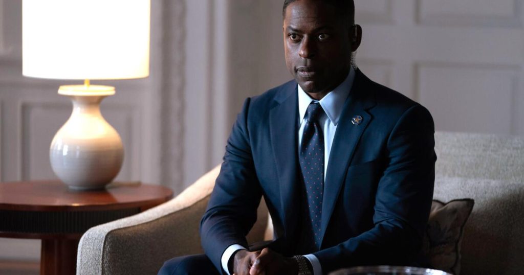 So this is a murder mystery. In flashbacks — there’ll be flashbacks aplenty across the series’ eight episodes — we learn that the victim is the president of the United States, Cal Bradford (James Marsden), and Xavier is, or was, his lead Secret Service agent. So this is possibly a conspiracy thriller. Bradford, once upon a time a charming politician with no identifiable politics but liked by the people and trusted by other leaders, has lately become a sad drunk who goes about all day in his bathrobe, and whose formerly chummy if professional relationship with Xavier has turned icy, if professional, much to the president’s dismay. Why that should be will be revealed, as will so many things, in due course.
