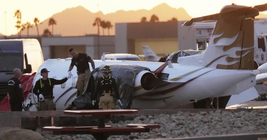 At 2:29 p.m., a Learjet aircraft flying in from Austin, Texas, veered off the runway while attempting to land at Scottsdale Airport and collided with a parked Gulfstream 200 aircraft, said Kelli Kuester, aviation planning and outreach coordinator for the airport at a news conference. It appears that the Learjet’s left main gear failed upon landing, causing the plane to crash, she said.