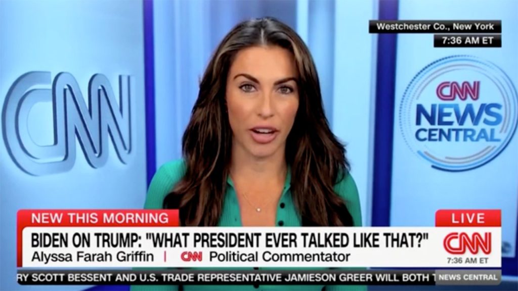 “The View” co-host Alyssa Farah Griffin took a shot at former President Joe Biden on Wednesday during an appearance on CNN, ahead of her interview with the former president scheduled for Thursday.